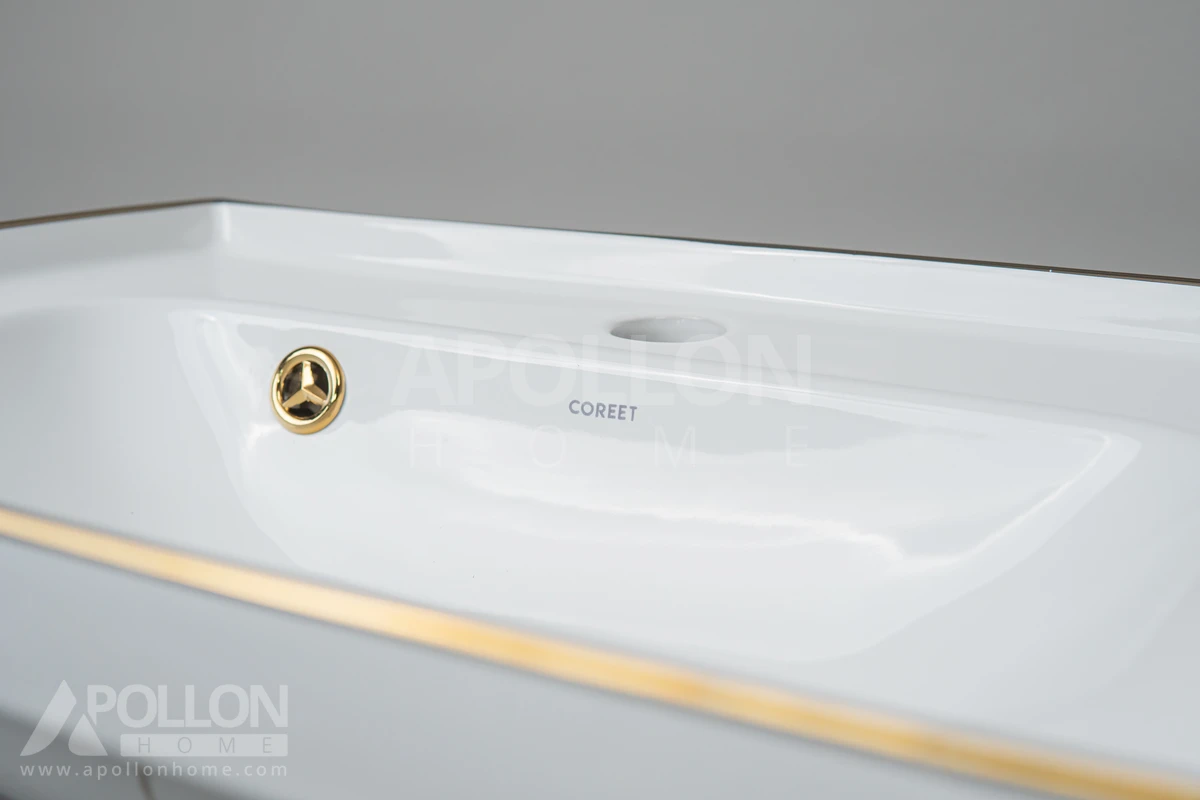 روکابینتی برند نوین سرام مدل سرینا 50 لبه طلایی - سفید - نمای نزدیک