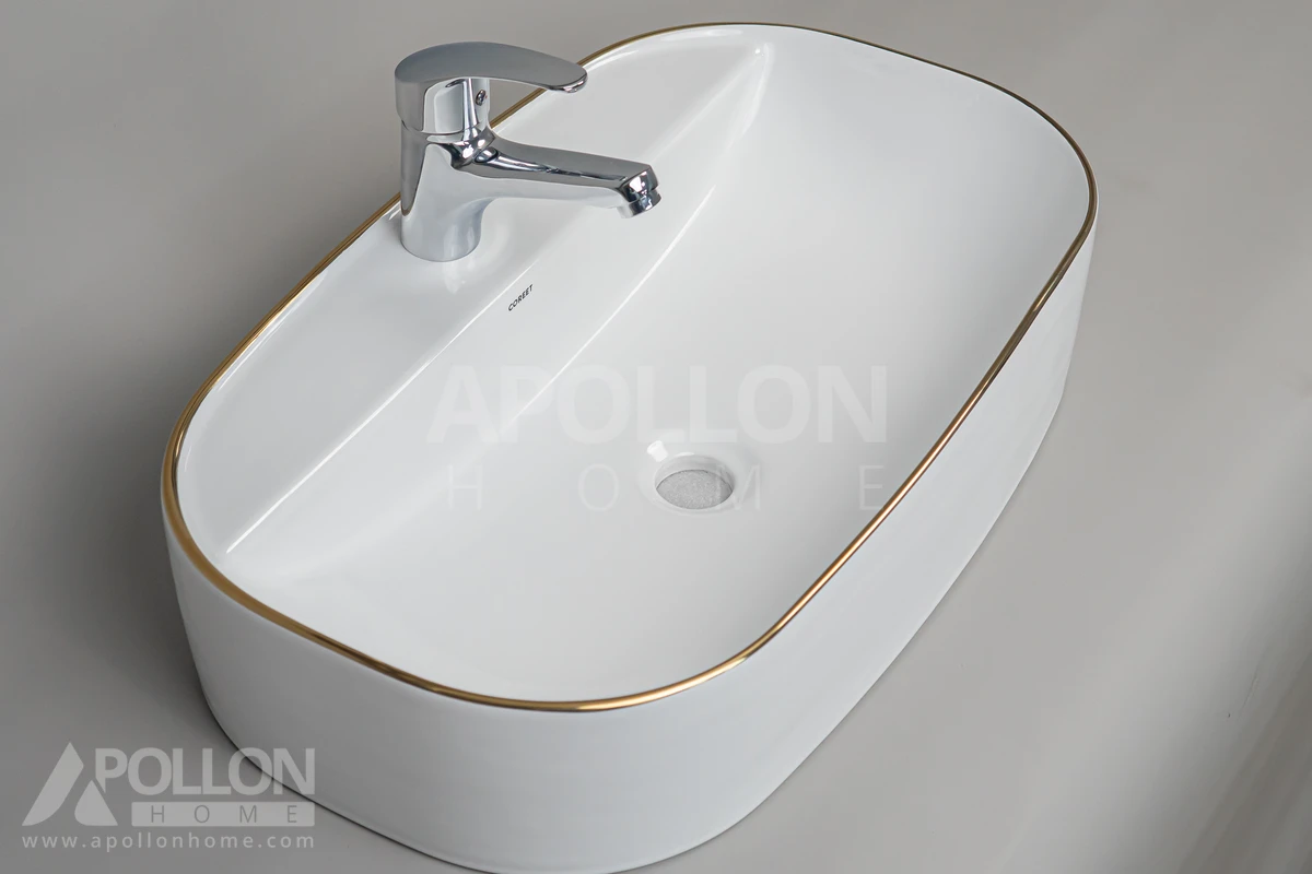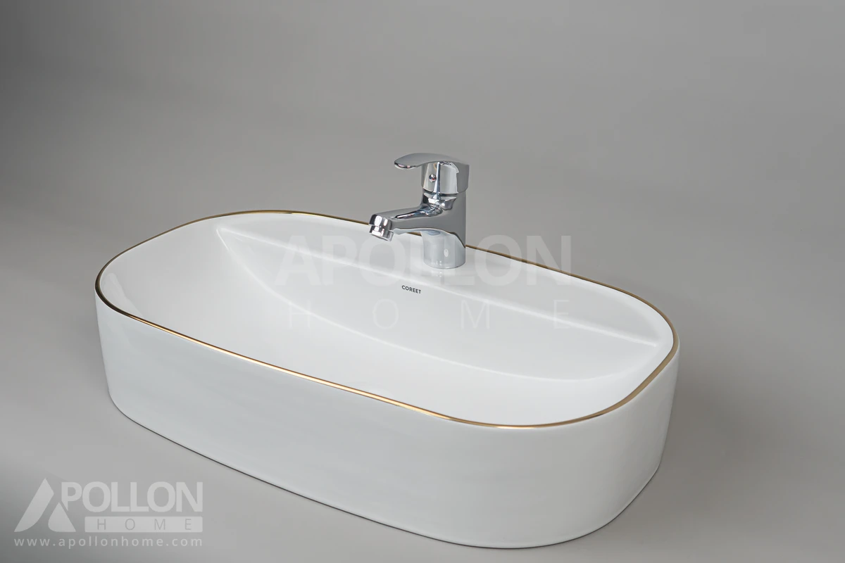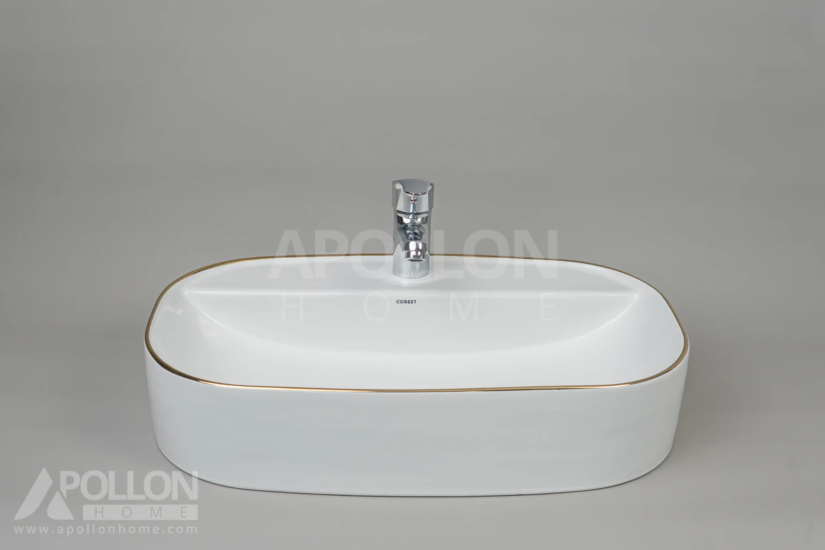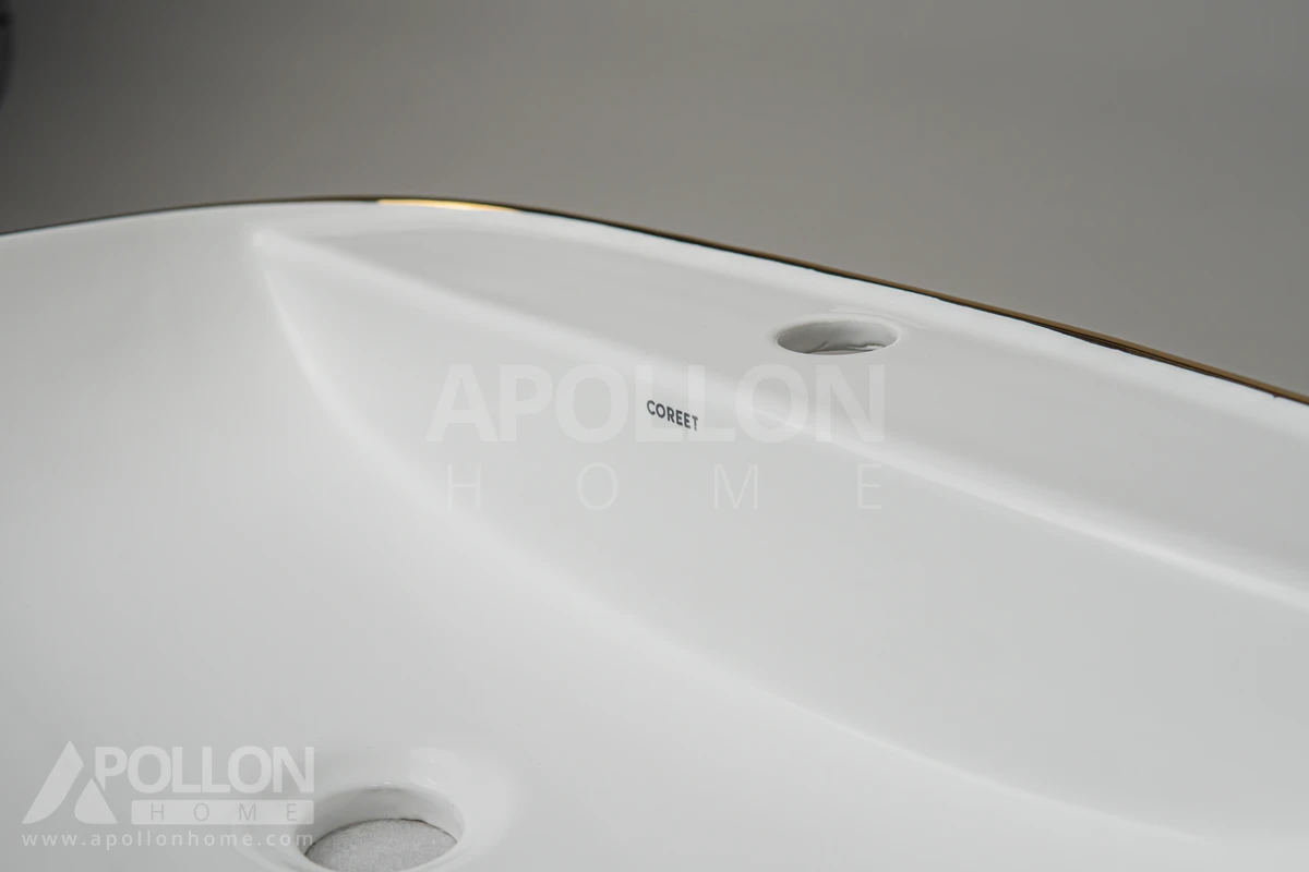 روکابینتی برند نوین سرام مدل لیزانو لبه طلایی - سفید - نمای نزدیک