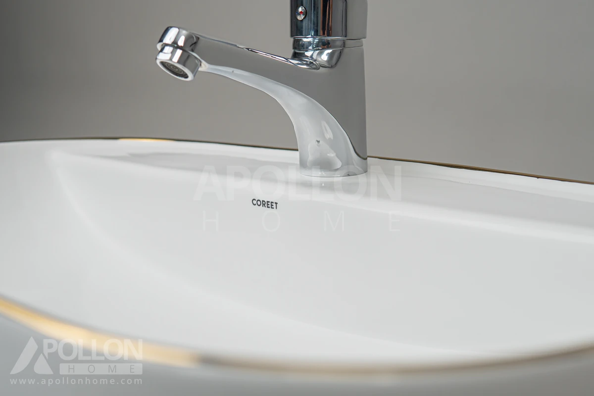 روکابینتی برند نوین سرام مدل لیزانو لبه طلایی - سفید - نمای کلی